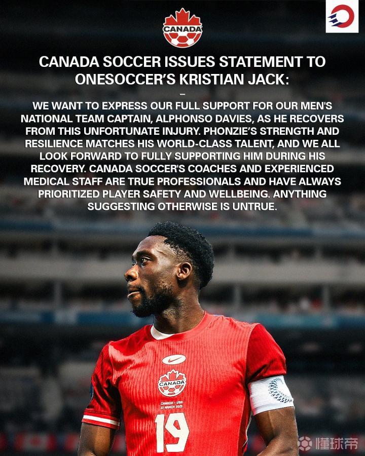 针对这一伤病,加拿大国家队官方也通过One Soccer媒体发布了声援公告,表达了对队长阿方索-戴维斯的支持和鼓励。他们强调了球员在伤病中的恢复过程中所需的全力支持,表示将为戴维斯提供专业的医疗团队和经验丰富的教练,确保他能够顺利恢复健康。